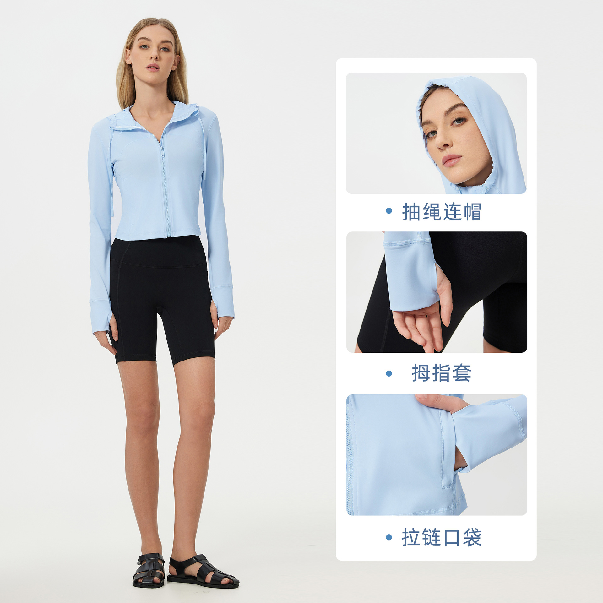 夏季凉感户外遮阳防紫外线皮肤衣轻薄速干透气连帽防晒衣女D25018