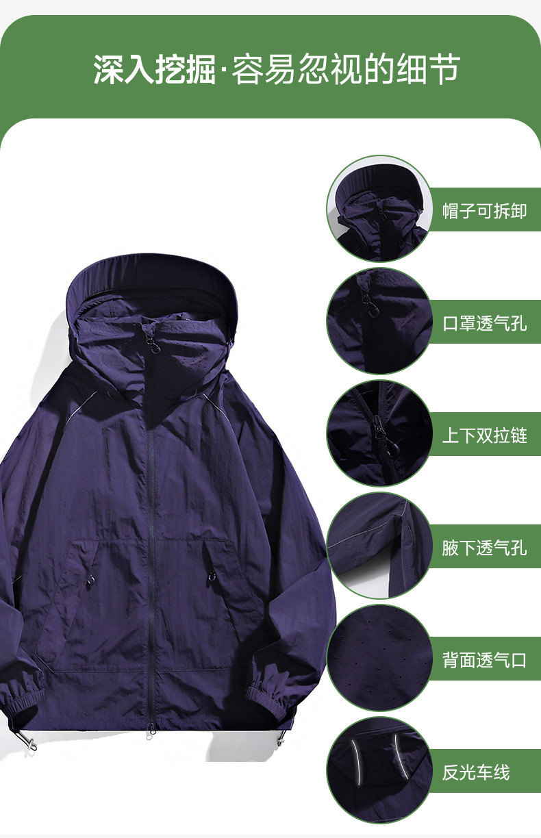 UPF50+防晒衣女防泼水超轻透气防紫外线户外运动吸湿排汗防晒服男