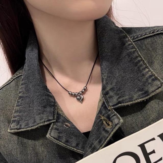 简约小众蜡线串珠爱心项链饰品女配饰高级感精致秋冬毛衣链子
