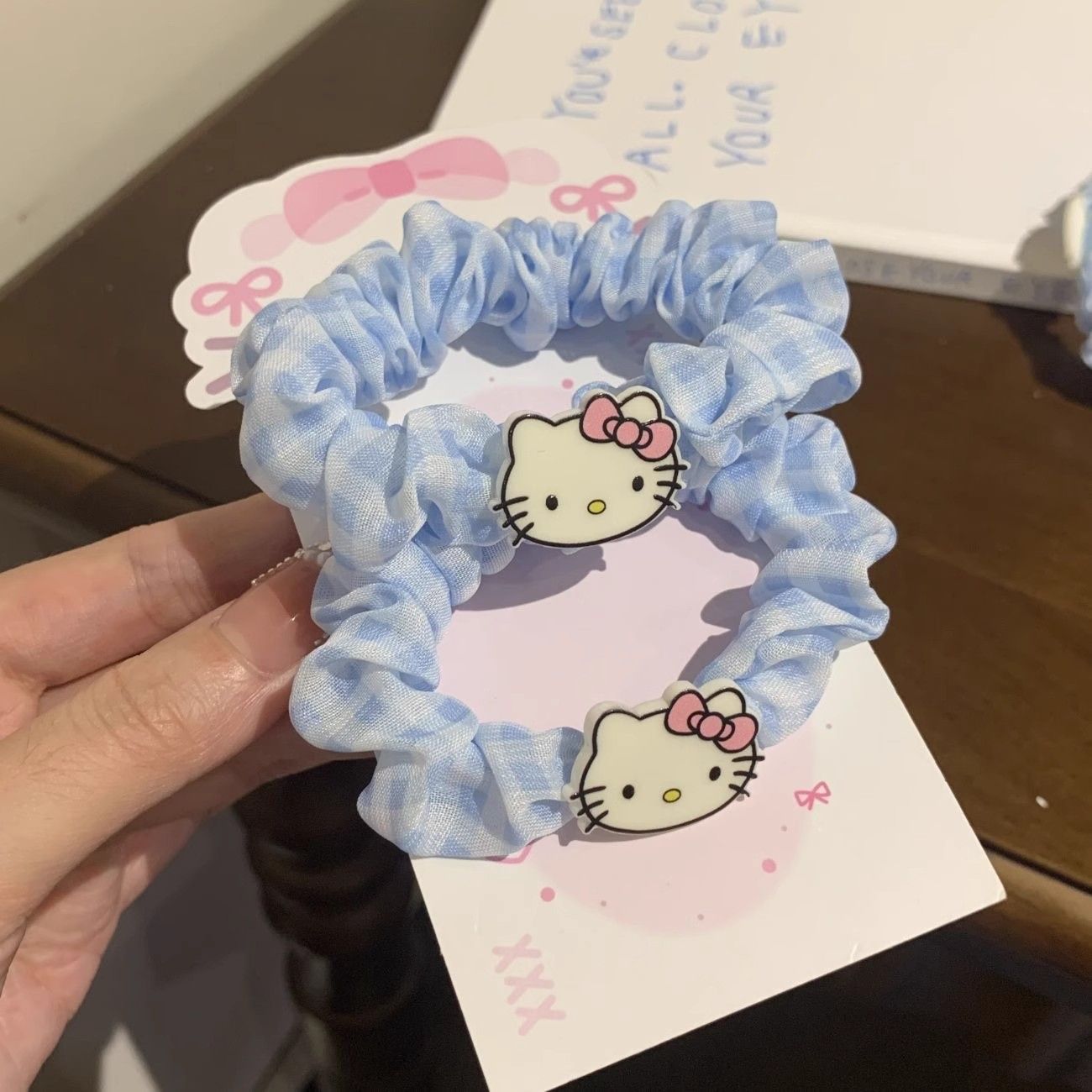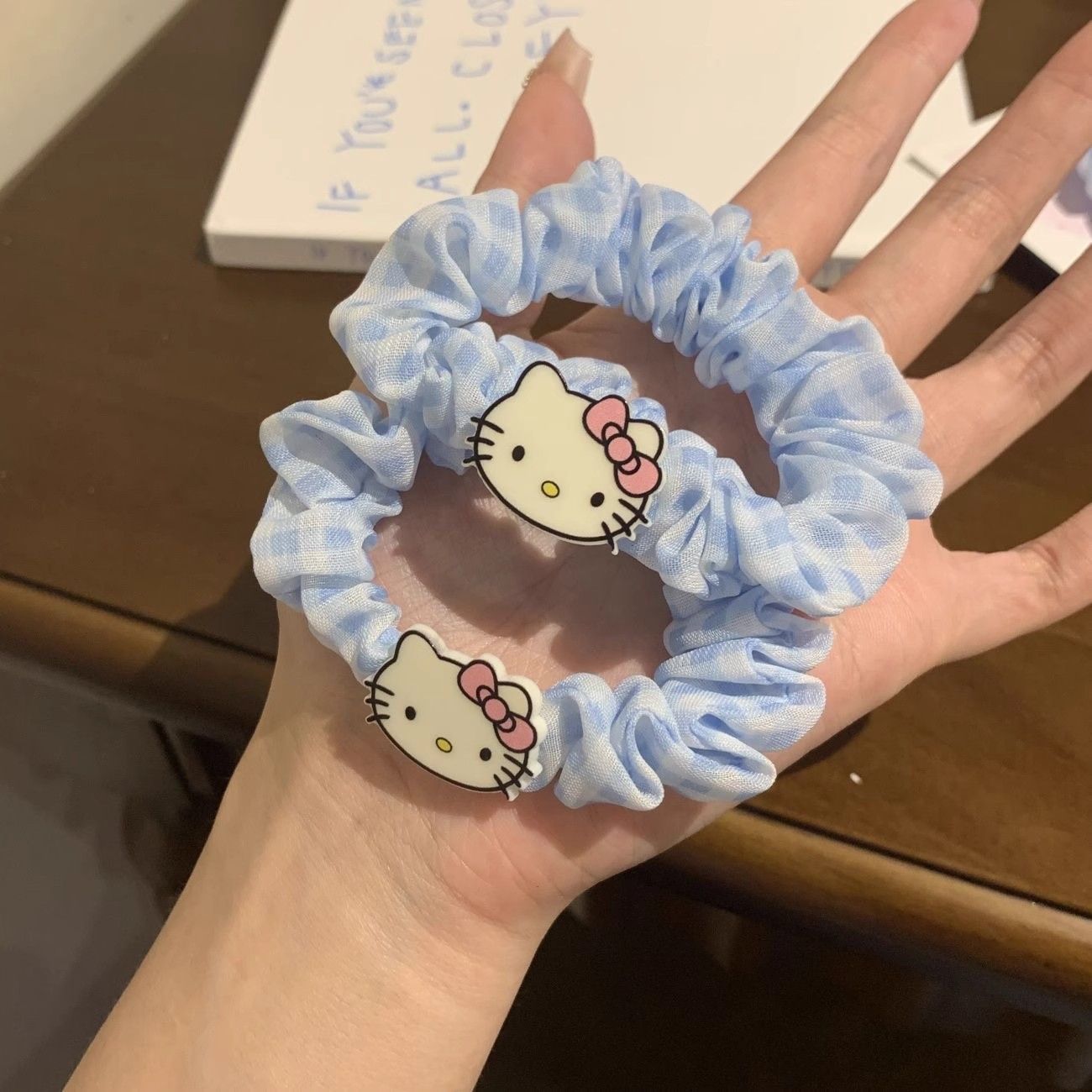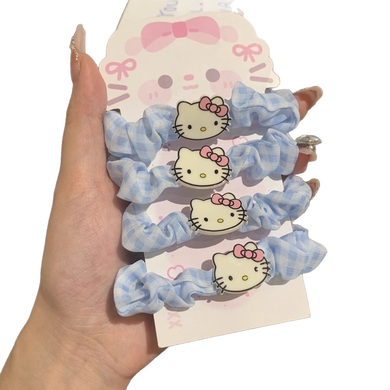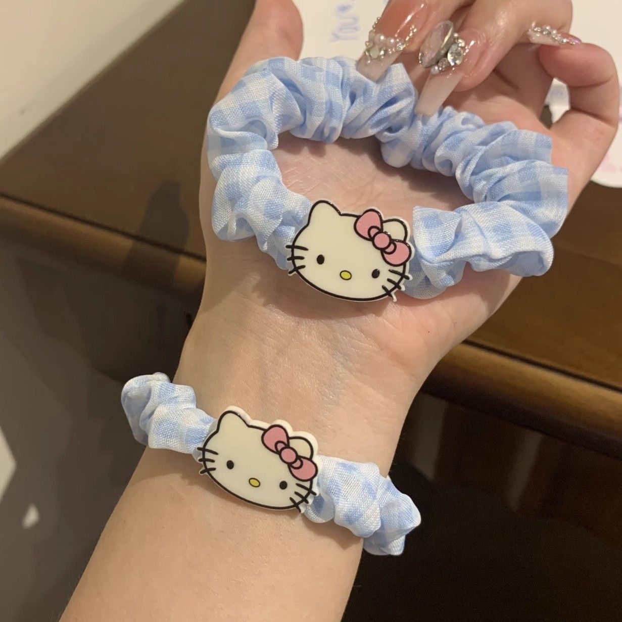蓝格子kt猫发绳