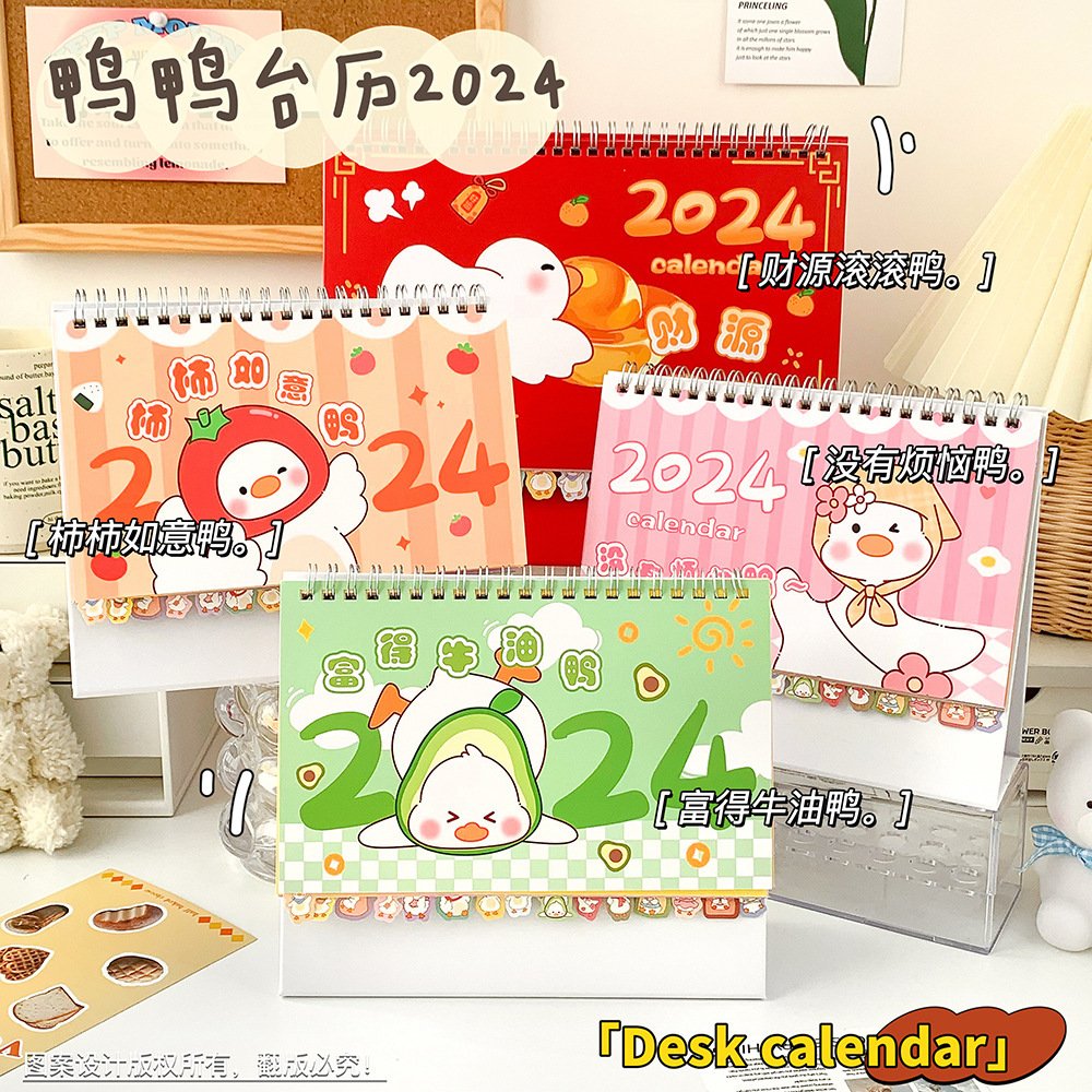 卡通鸭鸭台历学生桌面摆件计划台历本商务礼品龙年打卡日历本