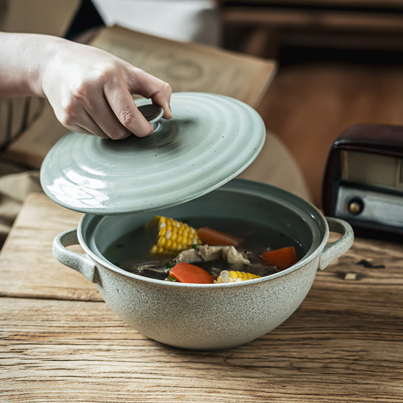 陶瓷带盖双耳碗实用大汤碗餐具大碗家用餐具碗厨房