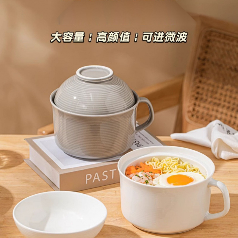 带盖碗饭盒上班族泡面碗带手柄陶瓷汤碗学生宿舍瓷碗方便面碗