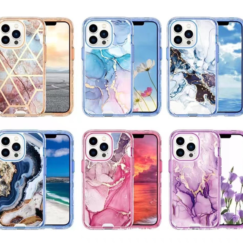 适用苹果15pro上下盖iPhone11/16pro三合一手机壳防摔大理石跨境
