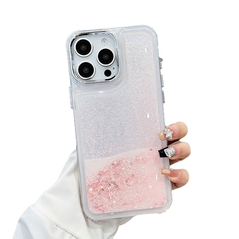 ins风按键高透流沙手机壳 新品适用iPhone16 闪粉15Pro女款14五色