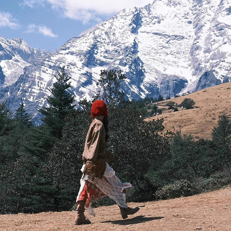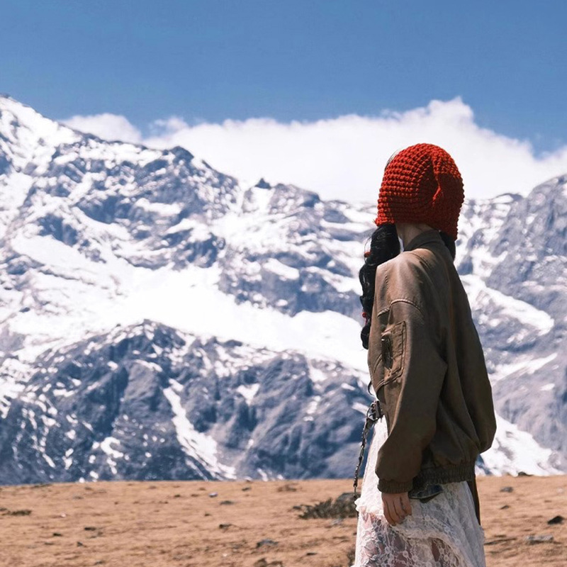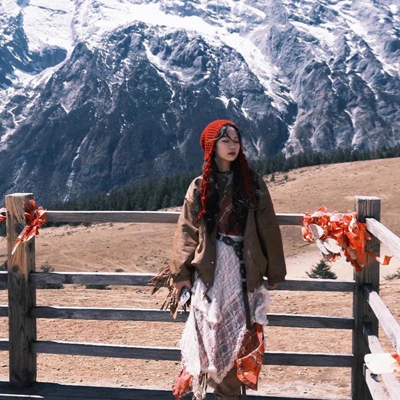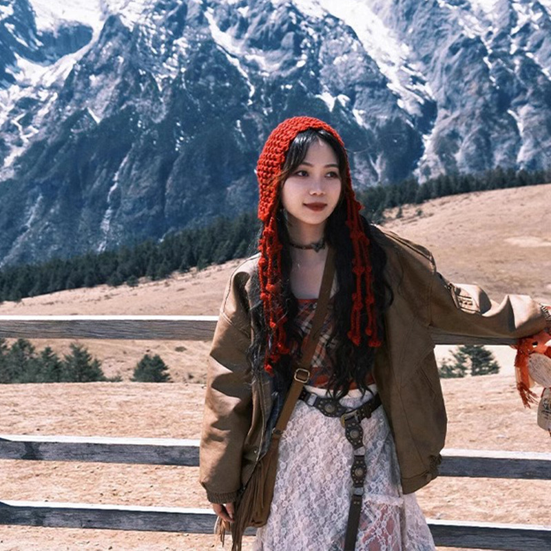 川西旅游镂空针织帽子手工流苏毛线帽子女保暖护耳针织帽套头冷帽