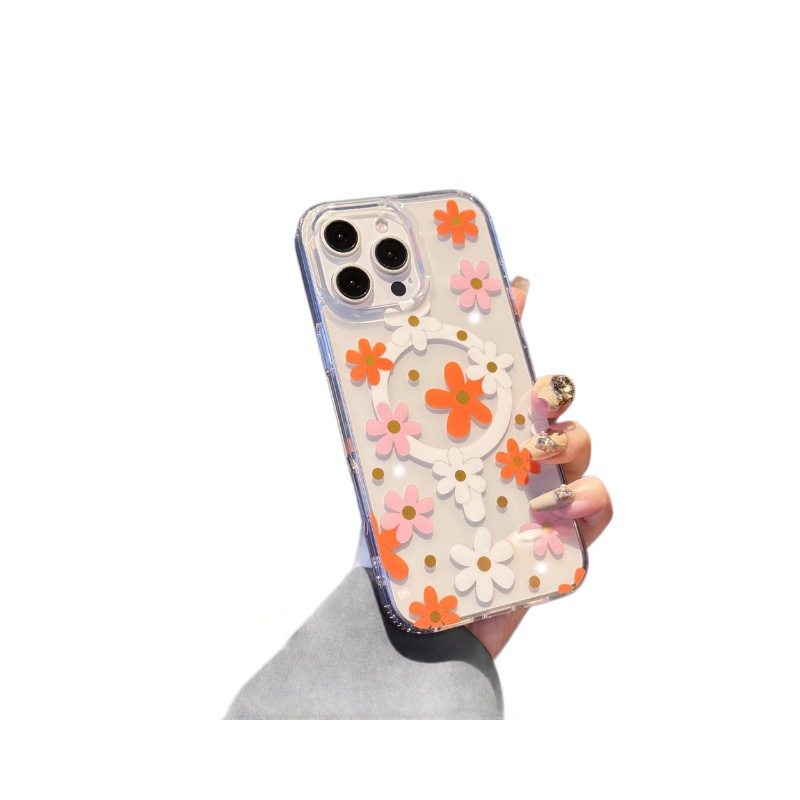 小清新满屏花朵iphone16磁吸手机壳镭射苹果16promax防摔透明壳17