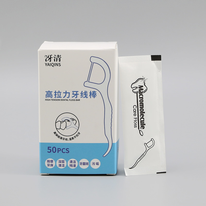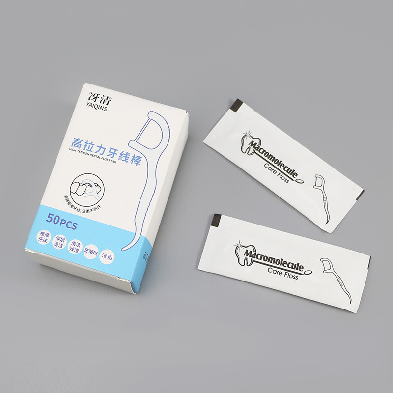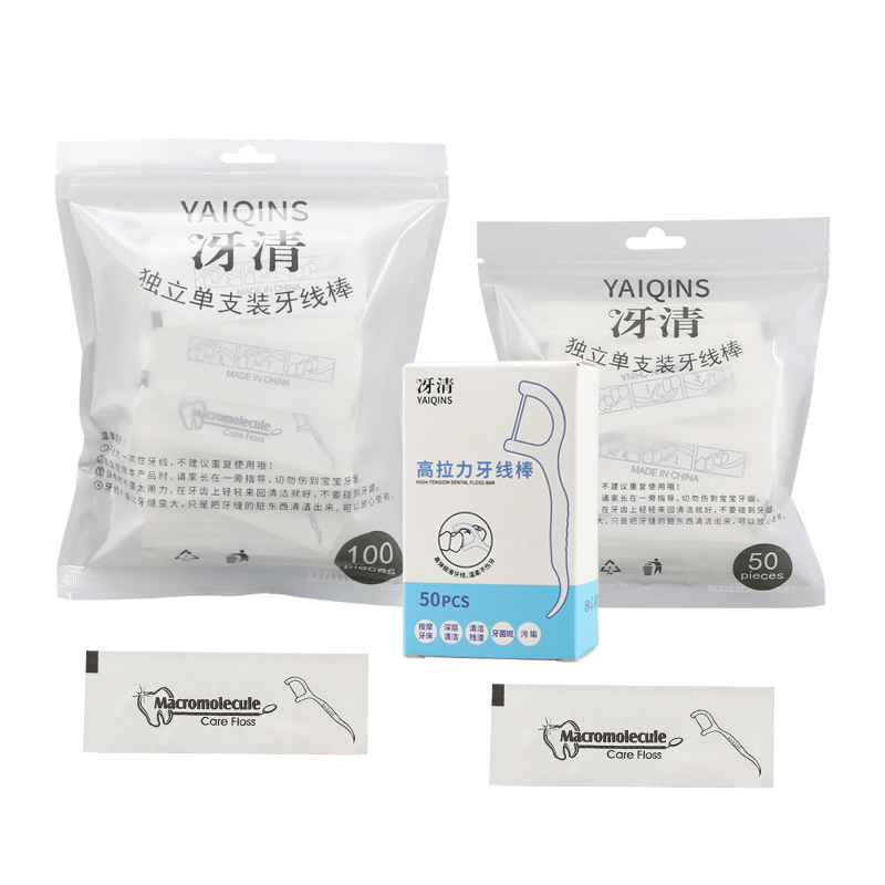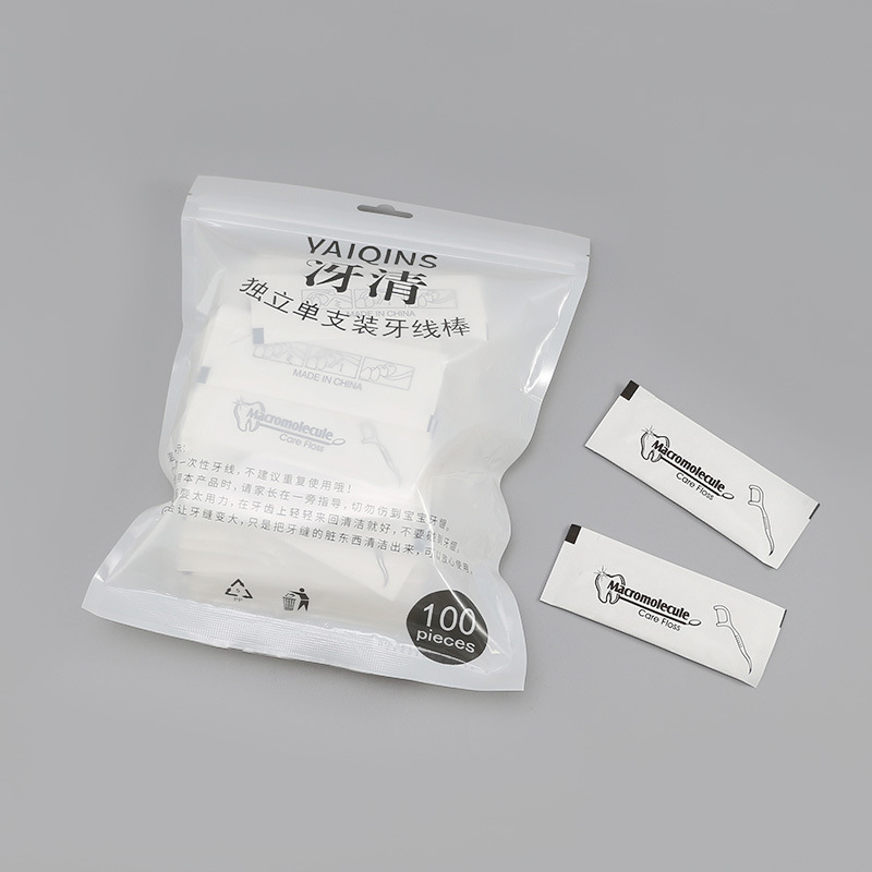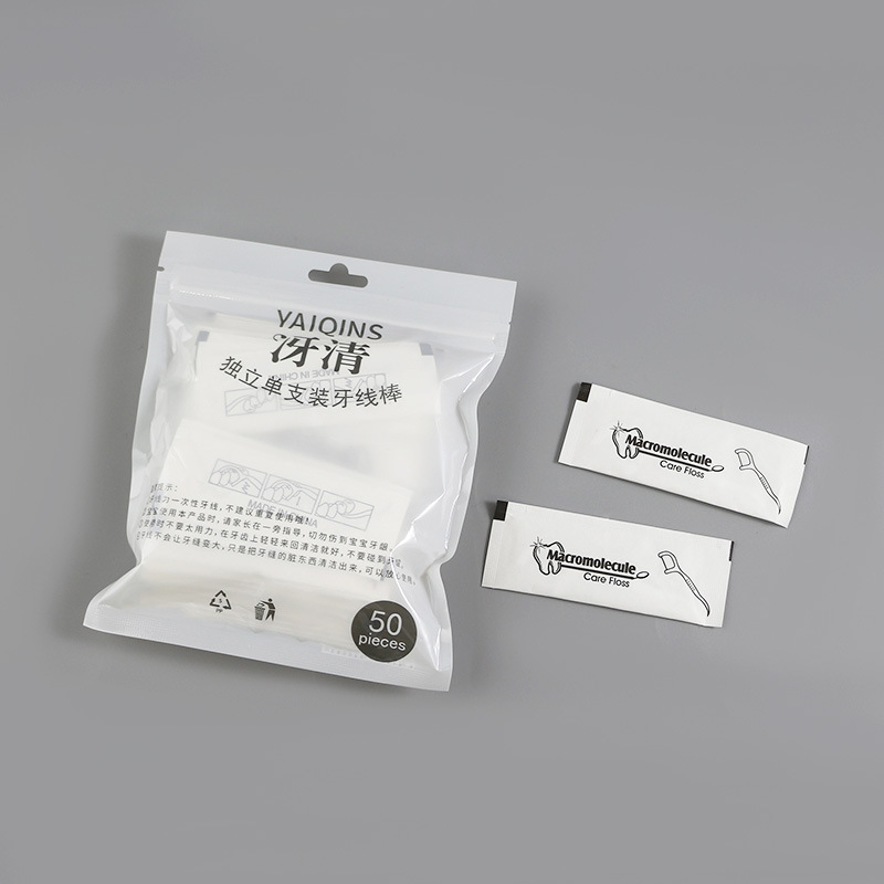 30/50/100 packs of bagged floss for teeth cleaning. Portable oral hygiene disposable toothpick in individual packaging.
