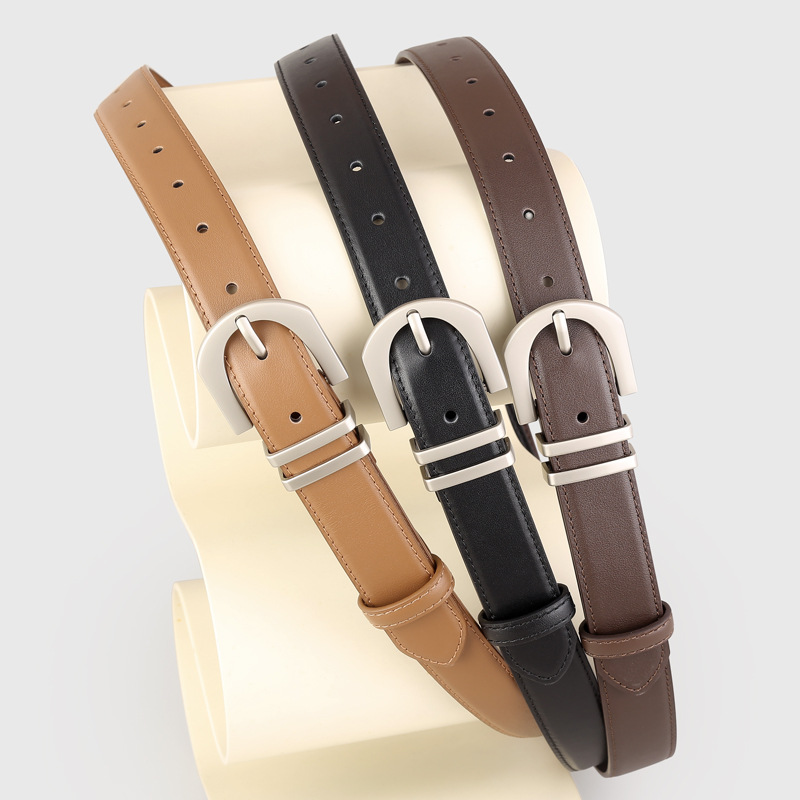 新款头层牛皮女士皮带银扣真皮装饰配牛仔裤腰带