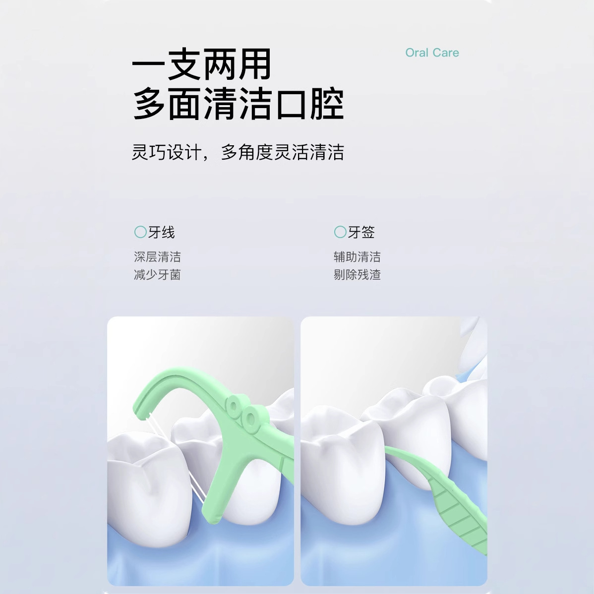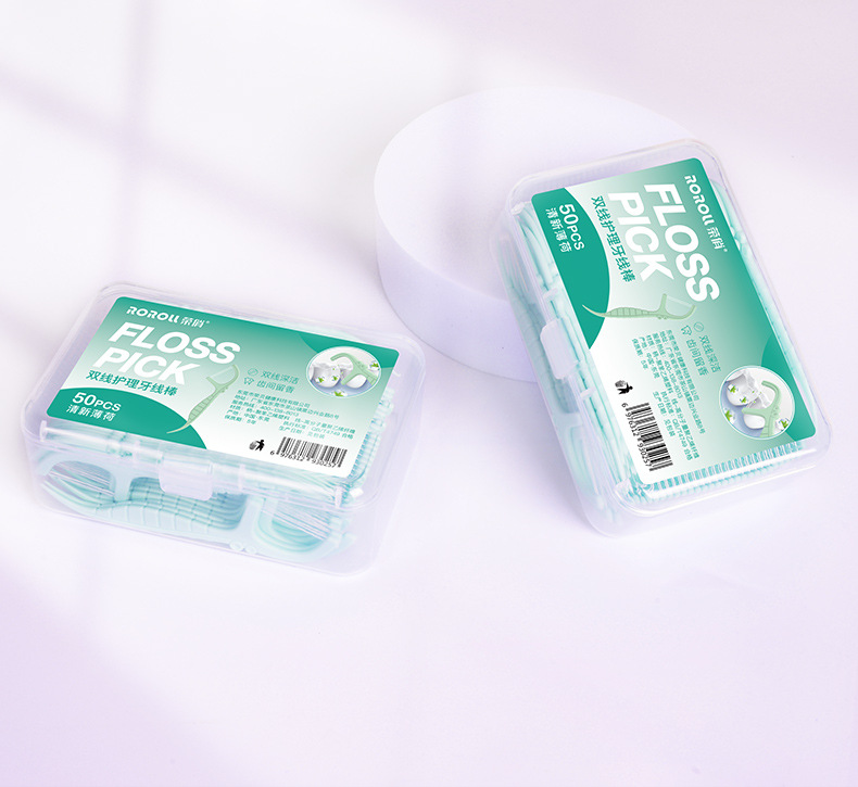 现货批发超细双线牙线薄荷味牙线棒高拉力盒装50支外贸英文新品