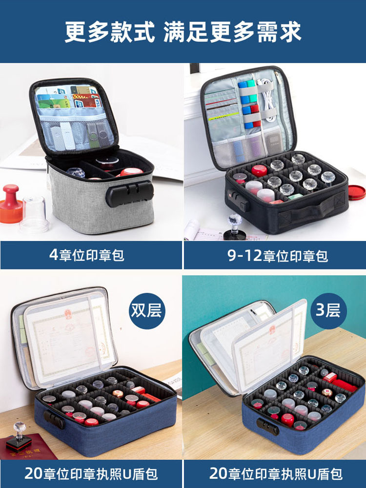 - 灰色3层20+章位印章执照收纳包 可放执照文件票据♜♜
