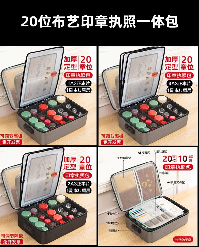 - 灰A3执照印章U盾包(配6张A3透明) 带锁20章位♜♜