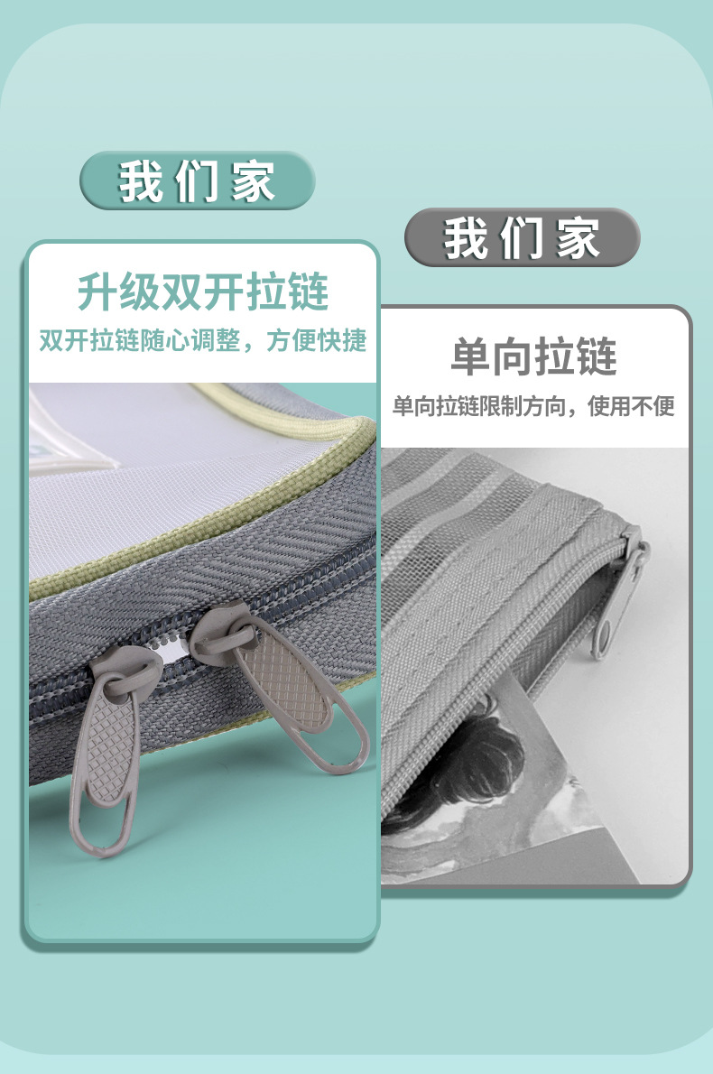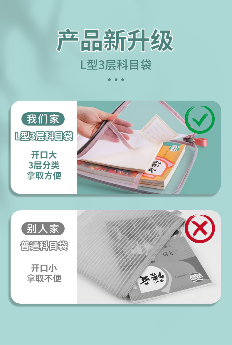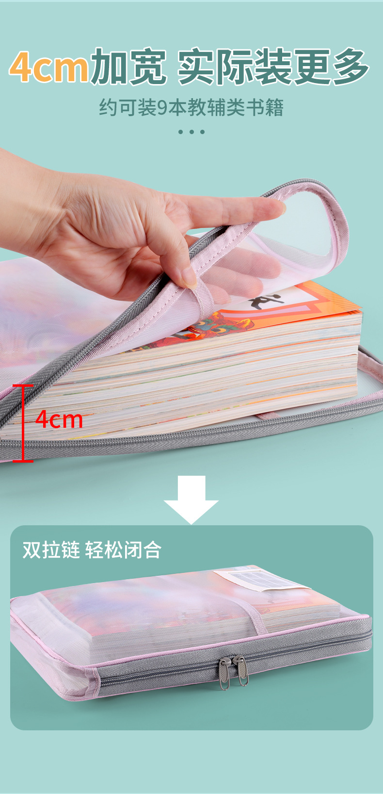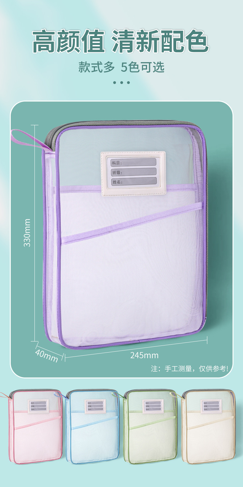加厚L型文件袋拉链大容量学生手提试卷分类袋 网纱三层科目袋