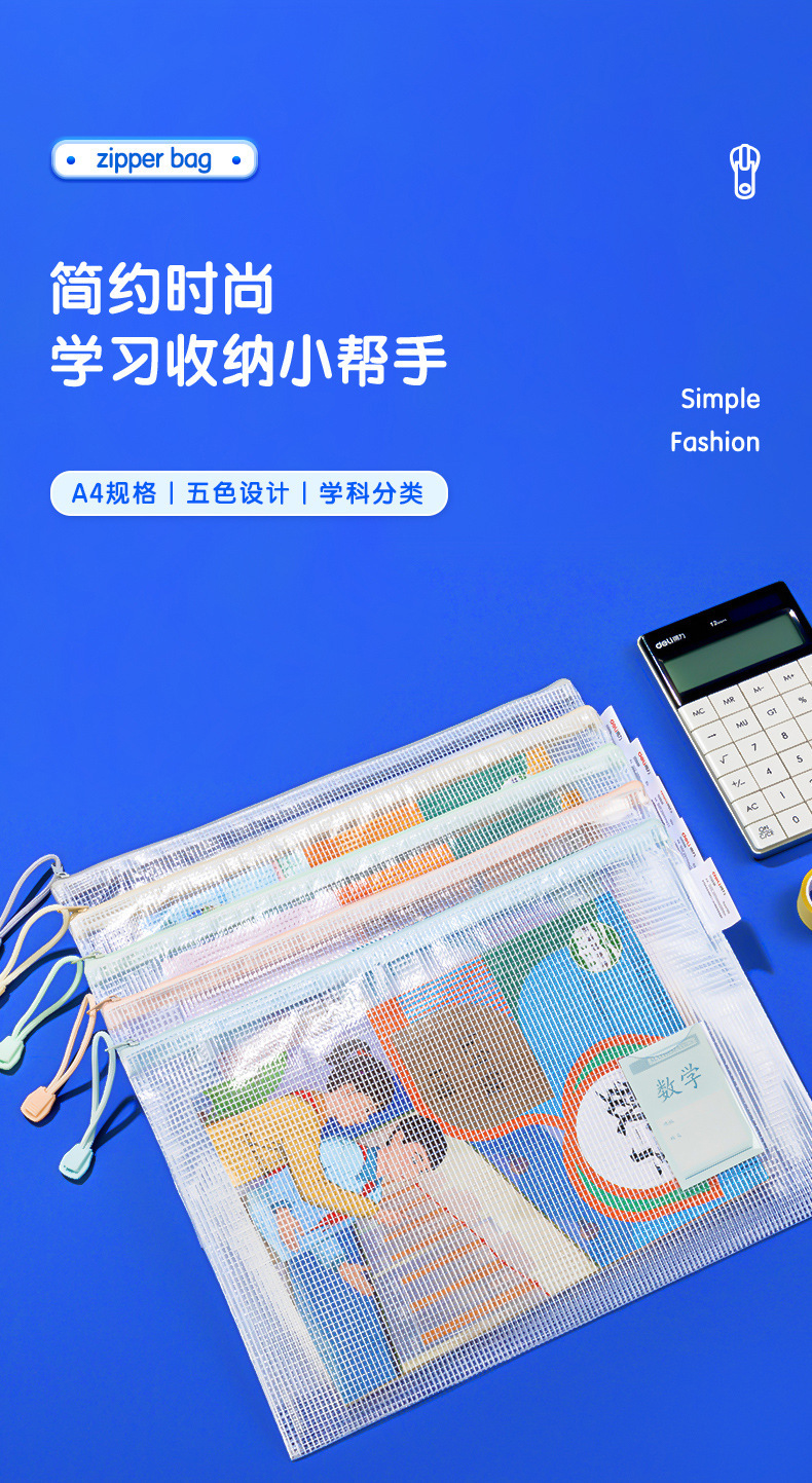 加厚L型文件袋拉链大容量学生手提试卷分类袋 网纱三层科目袋