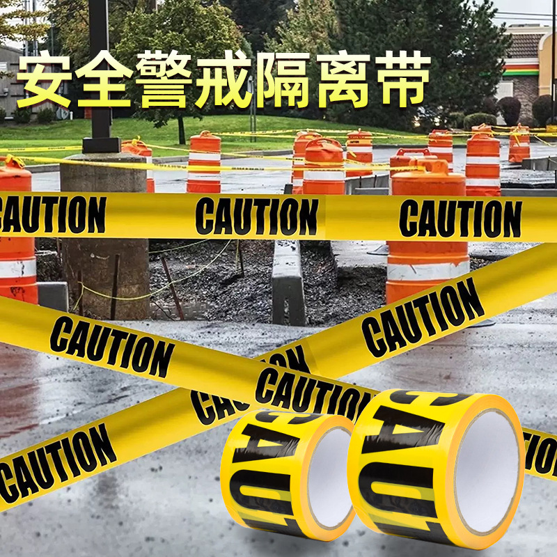 警示带无胶安全线英文拍照道具布景一次性反光隔离带黄黑警戒胶带