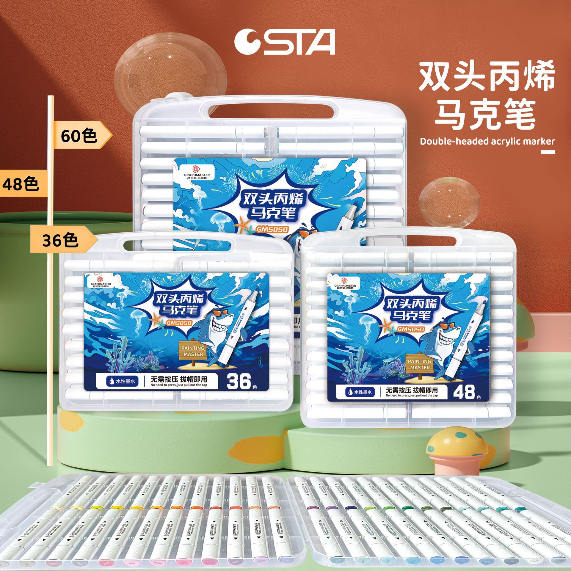 丙烯软头马克笔批发小红书d音儿童美术涂鸦笔绘画颜料彩笔易水洗