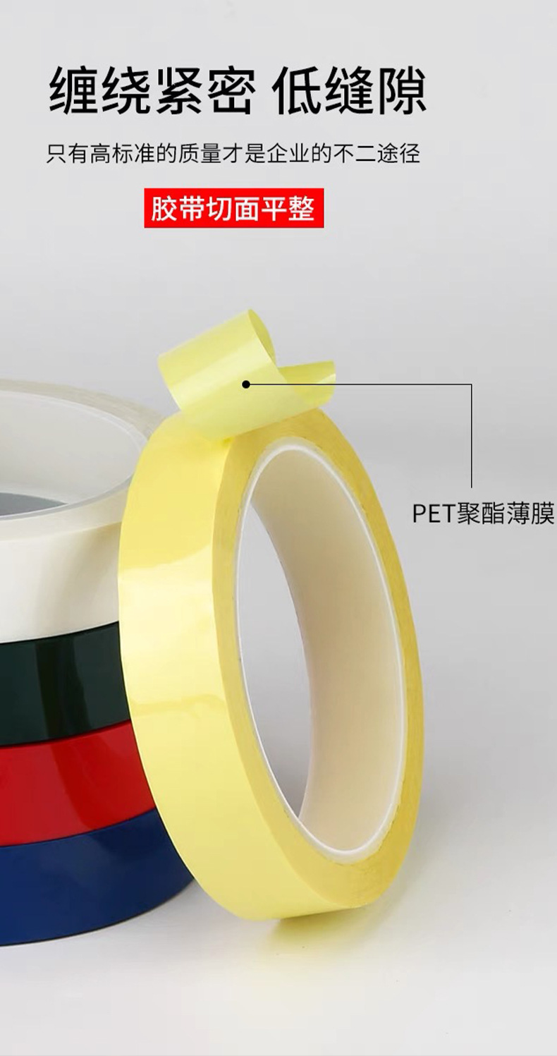 PET玛拉胶带 彩色高温无痕马达电压器阻燃绝缘5S定位胶带