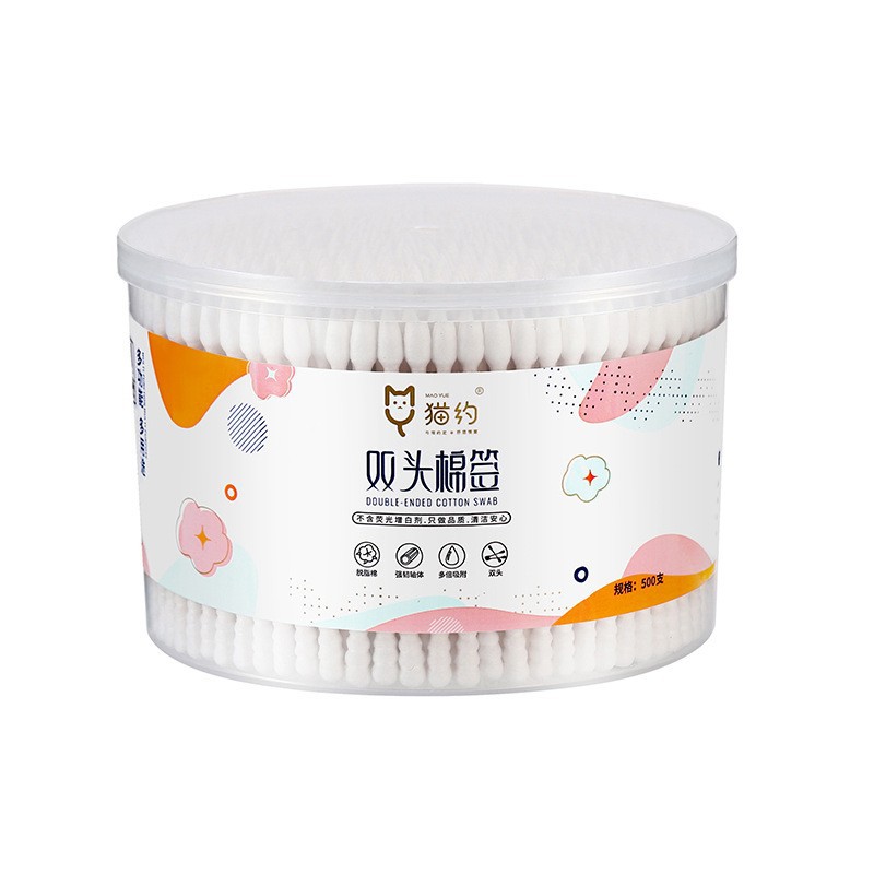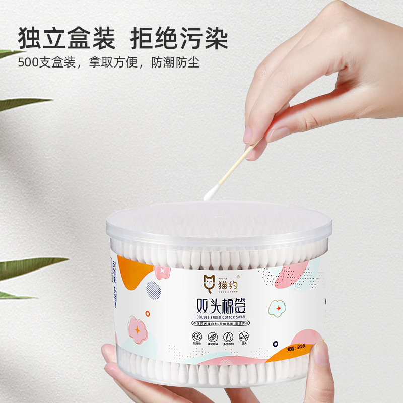 猫约盒装双头棉签500支化妆棉棒一次性化妆竹棒棉签现货工厂批发