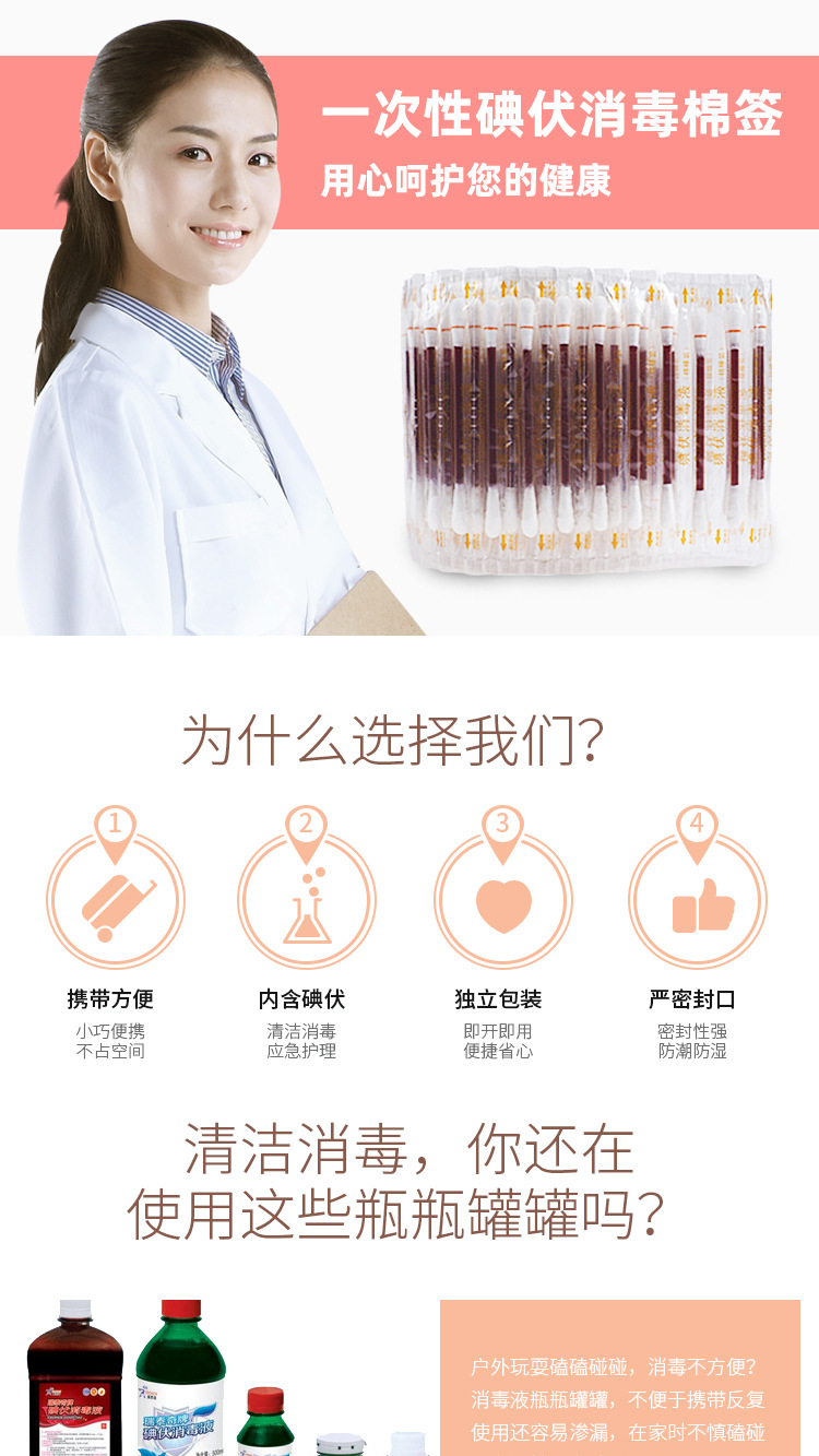 一次性折断式碘伏棉签独立包装宝宝婴儿便携卫生消毒棉棒现货批发