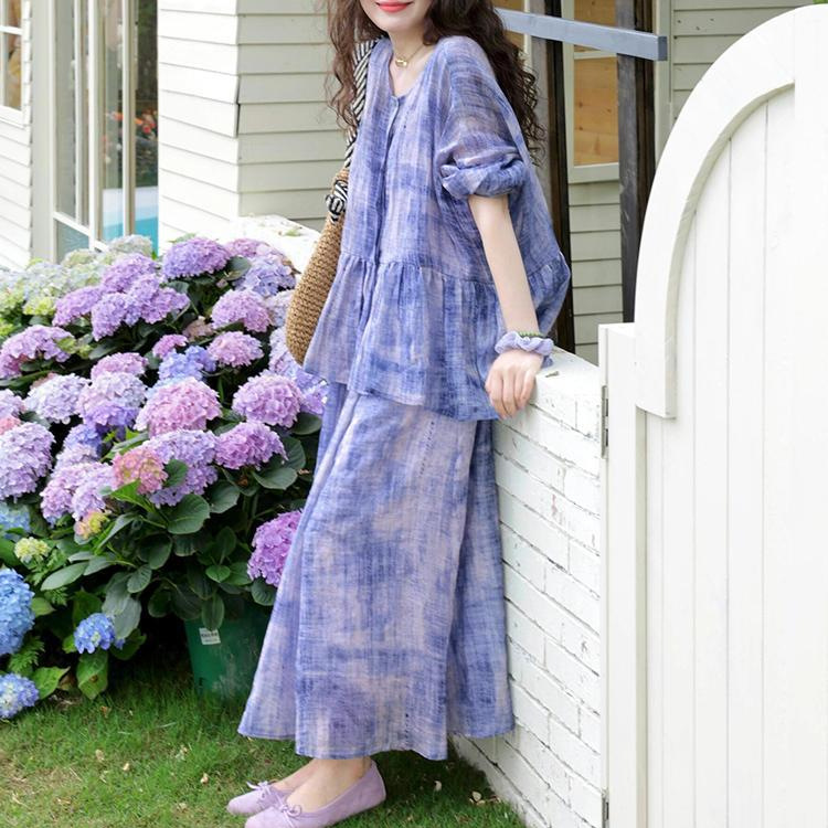 早秋搭配一整套蓝色晕染新中式禅意国风薄款衬衫吊带连衣裙子