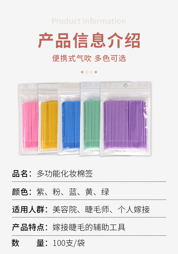 嫁接种植睫毛袋装棉签 清洁棒棉签多功能化妆棉签一包100支棉签