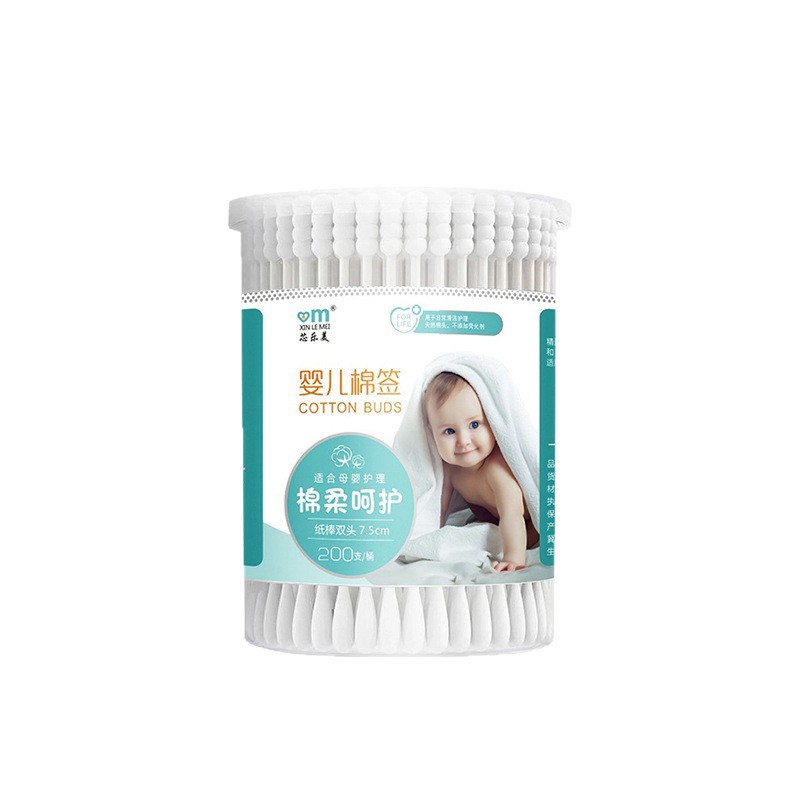 婴儿棉签200支装双头纸轴新生儿宝宝耳勺螺旋掏耳清洁一次性细轴