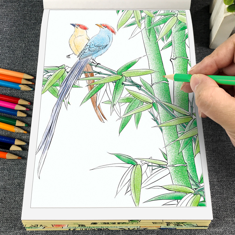 儿童线描临摹画册简笔画中国画白描画画手绘本山水人物花卉线稿涂色控笔训练练习绘画描绘本入门画本素描画册