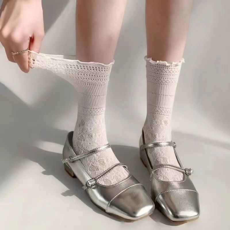 袜子女春夏中筒袜白色镂空蕾丝jk堆堆袜配玛丽珍木耳边薄款花边袜