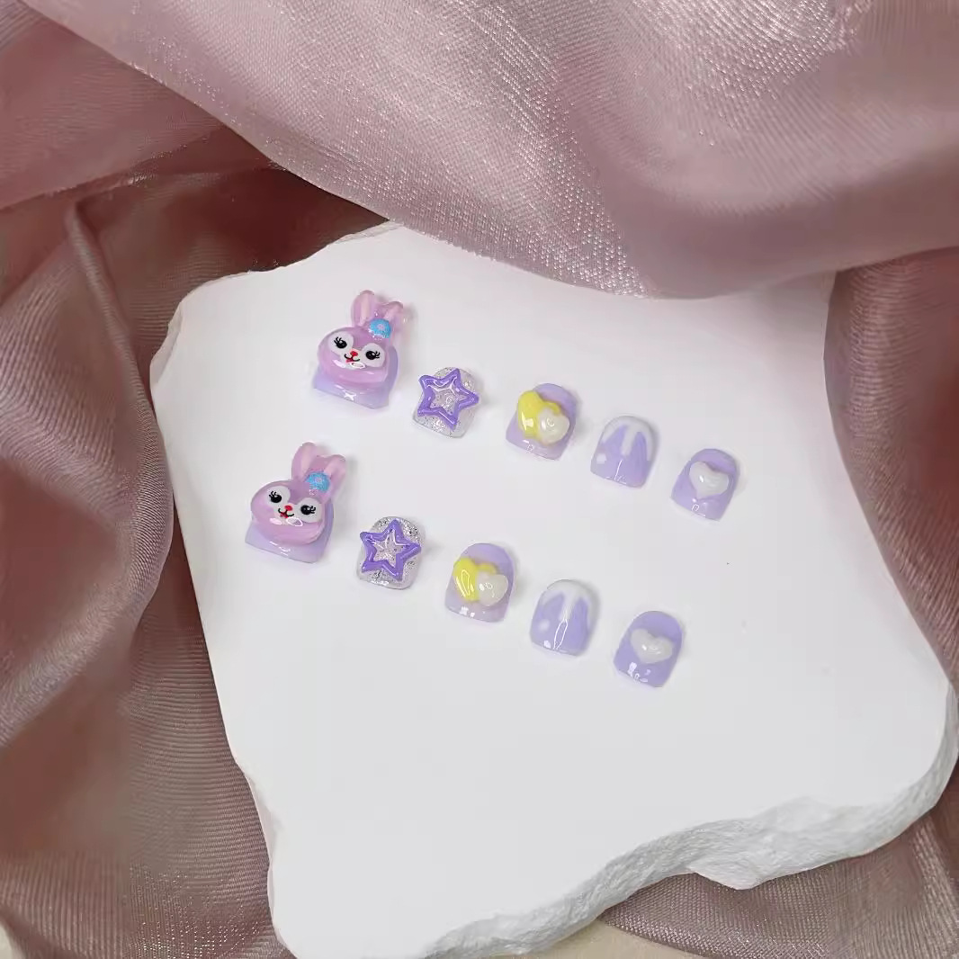 新款儿童纯手工穿戴甲无毒3-12岁女童小朋友短款可爱卡通美甲贴片
