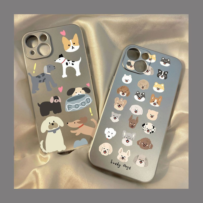 卡通小狗手机壳适用于苹果15promax金属银iPhone14小众13软壳12/1