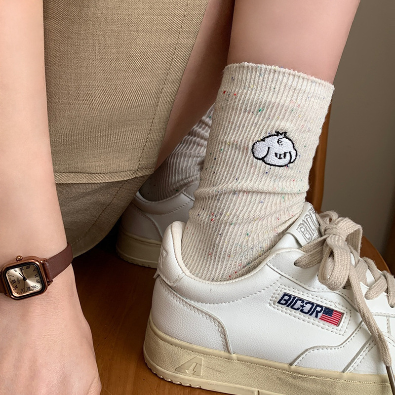 卡通可爱点子纱刺绣袜子男女中筒袜春夏新品ins韩版小众堆堆袜