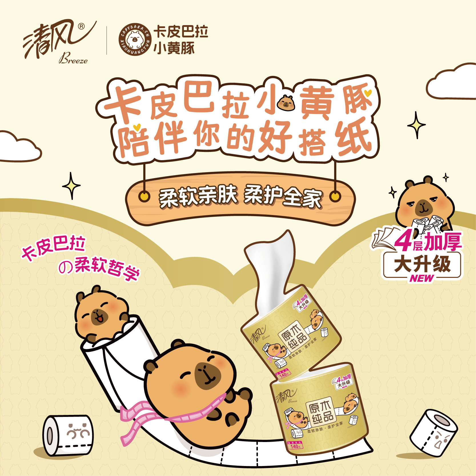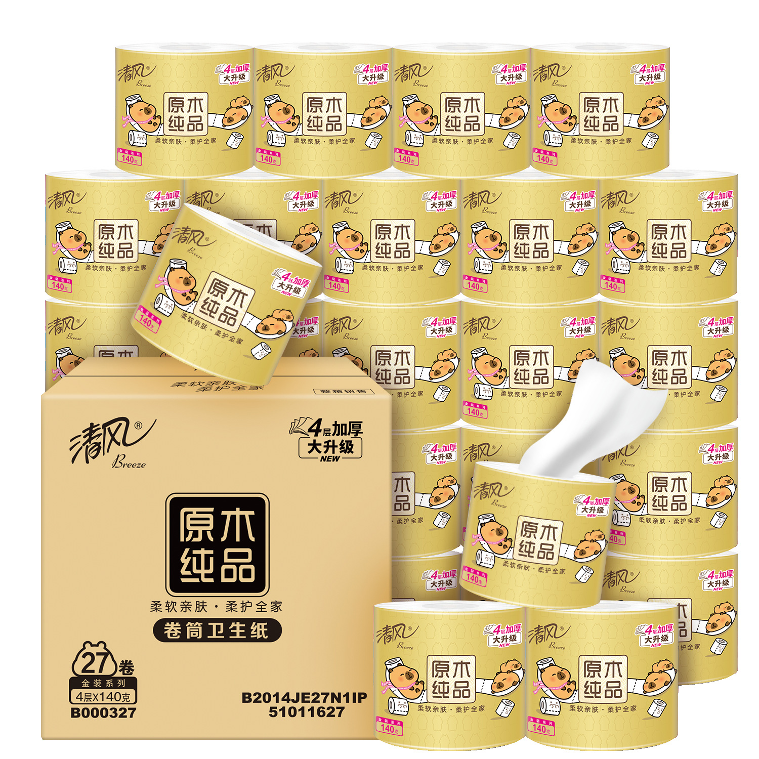 清风金装卡皮巴拉有芯卷纸4层140g卷纸卫生纸27卷整箱