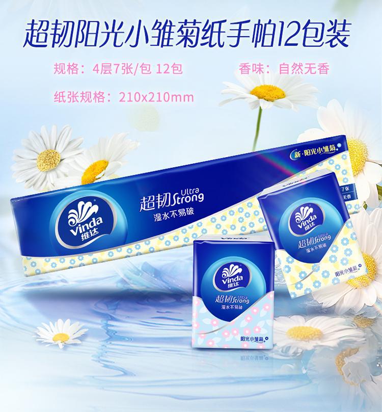 维达手帕纸小包纸巾随身装卫生纸餐巾纸4层12包提装手帕纸纸