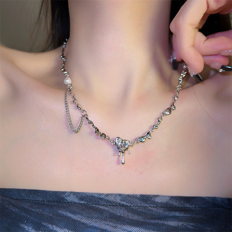 轻奢小众高级感水晶爱心珍珠项链女百搭时尚甜酷风心形熔岩锁骨链