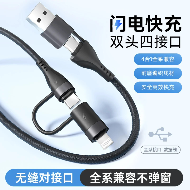 60W超级快充四合一数据线PD快充typec适用苹果华为数据线通用USB
