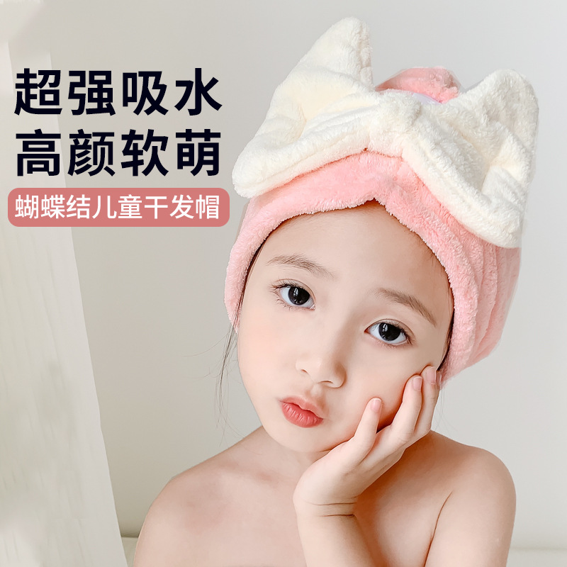 新款大蝴蝶结儿童干发帽女浴帽可爱卡通干发巾速干吸水擦头巾
