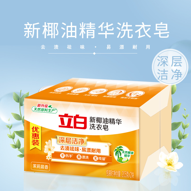 立白洗衣皂椰油皂去渍去污除味205g*2块