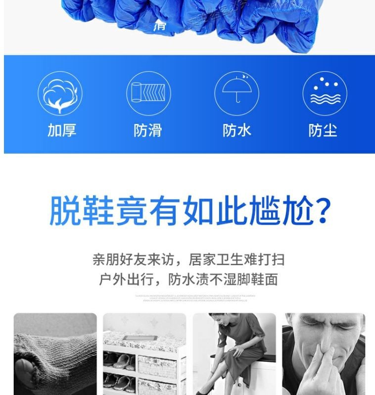 一次性鞋套加厚防塑料防水耐磨防滑家用无尘车间防尘脚套