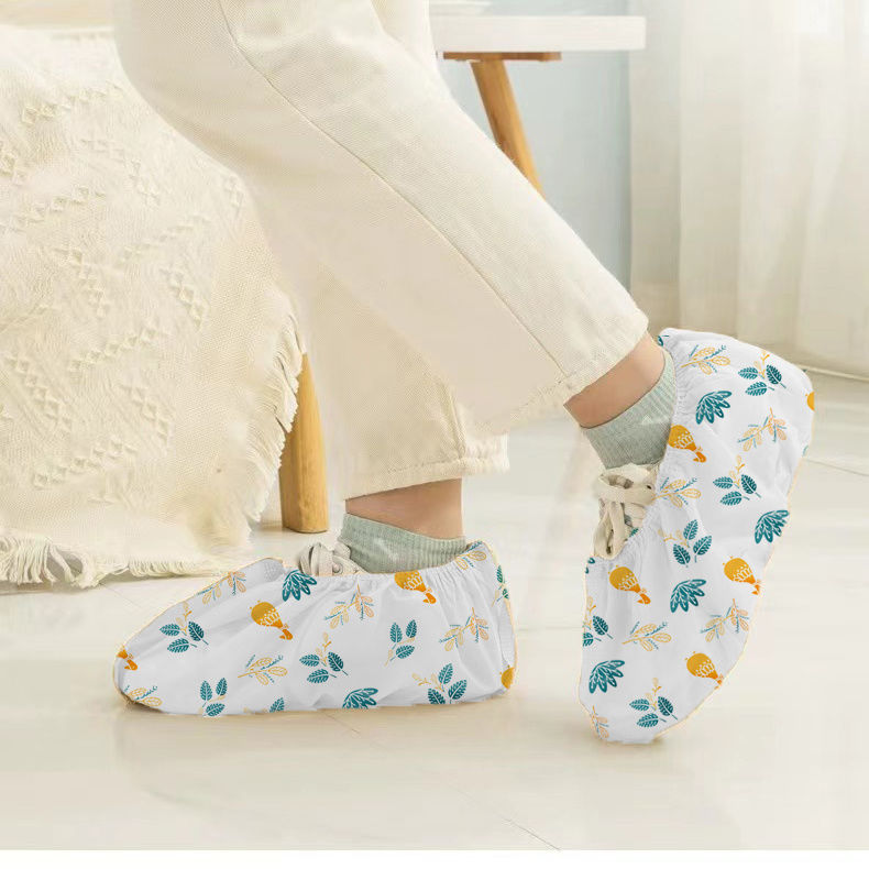 圆头一次性鞋套家用加厚印花室内成人学生耐磨防滑待客无纺布脚套