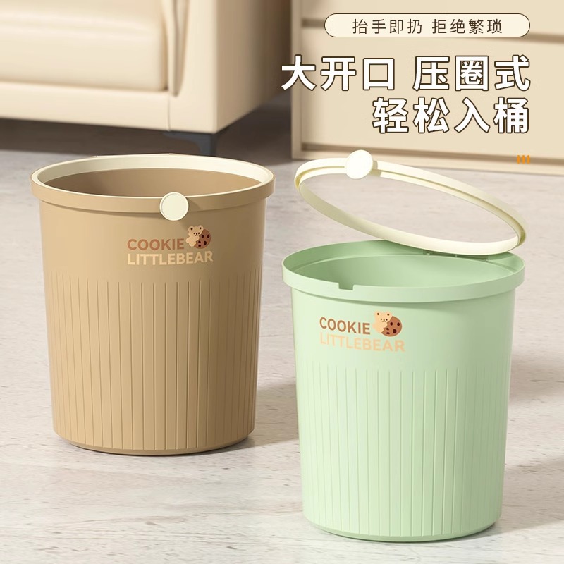 奶油风垃圾桶家用大容量高颜值纸篓厨房卫生间客厅清洁桶无盖圆通