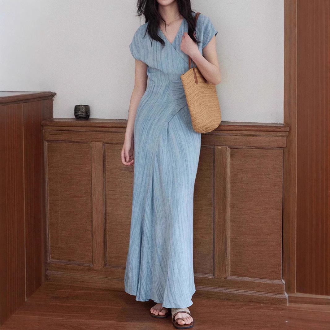 贰羊设计【瑾艳】仿炒色肌理短袖连衣裙女夏通勤大气简约气质裙子