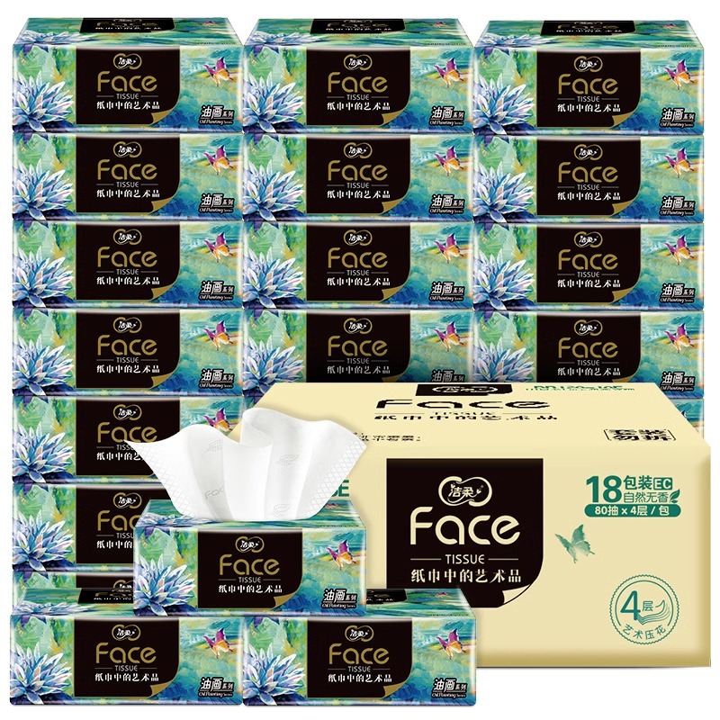 洁柔抽纸艺术油画款4层M码纸巾家用实惠装面巾纸餐巾纸卫生纸抽