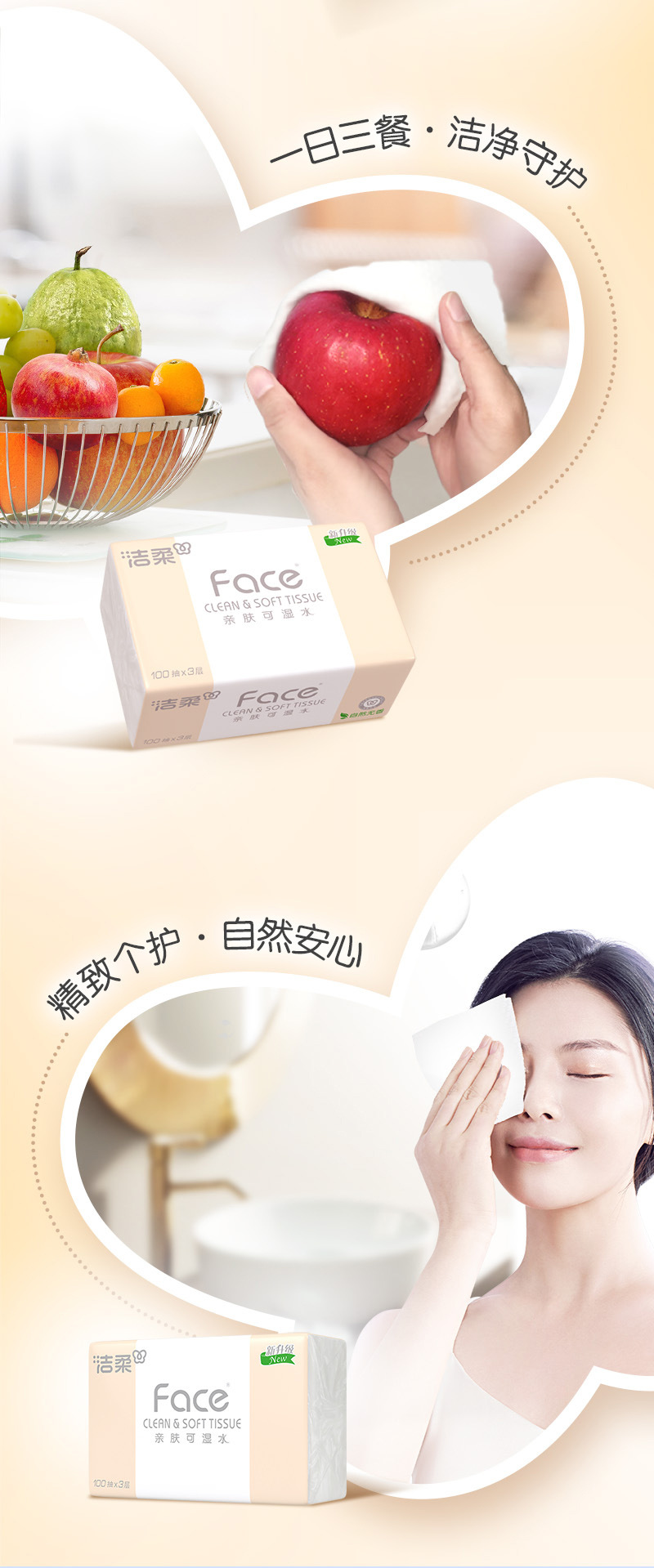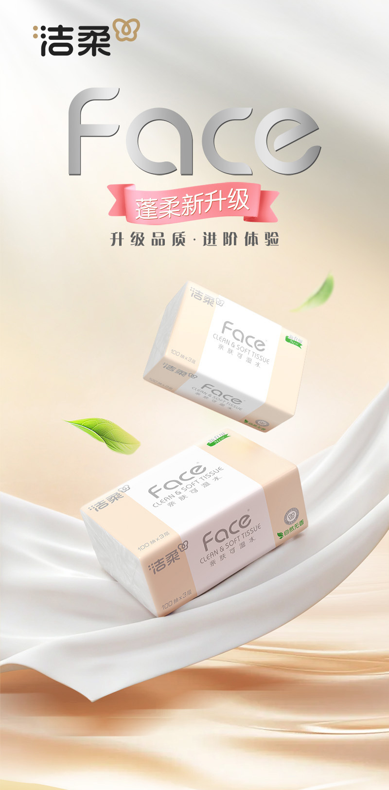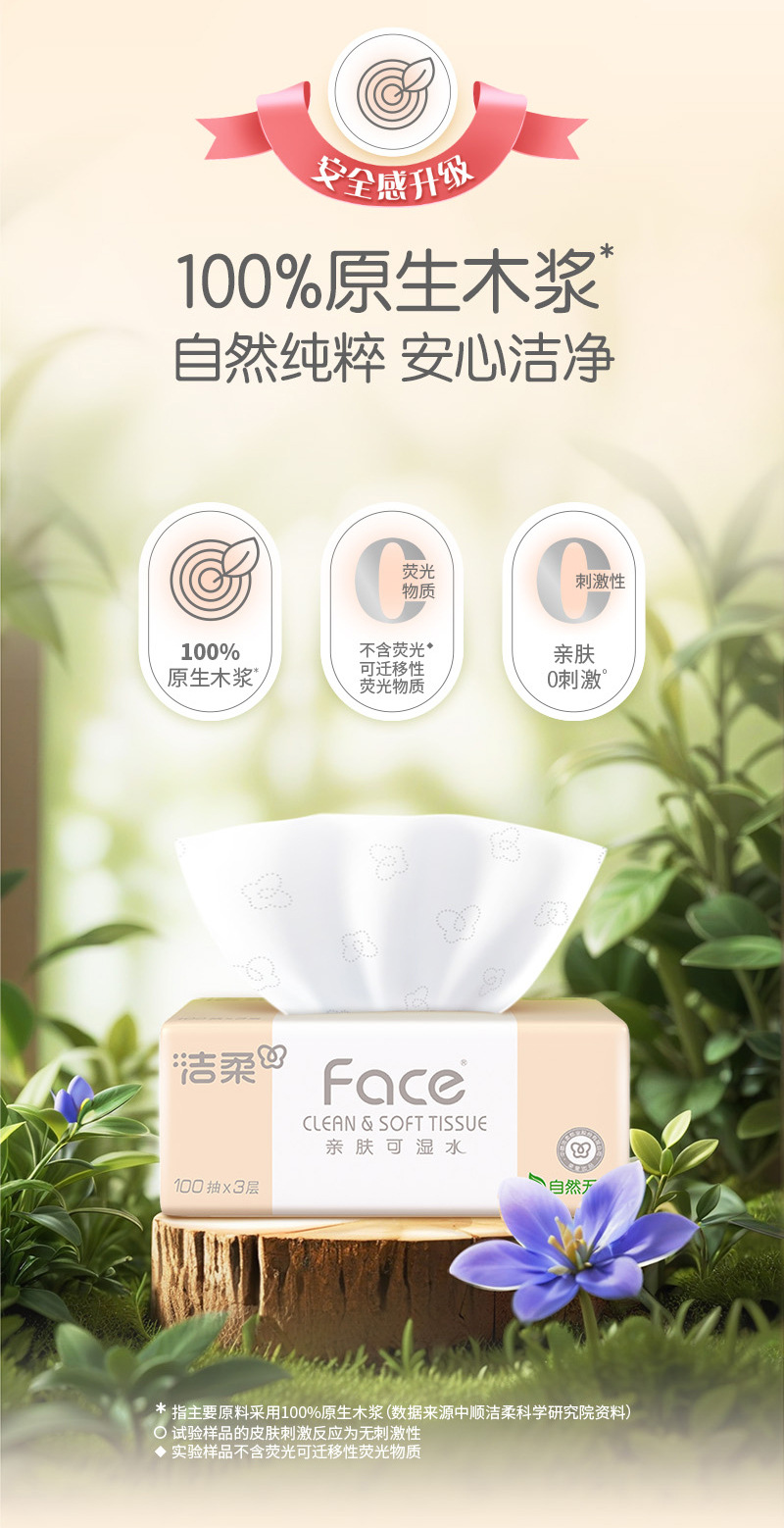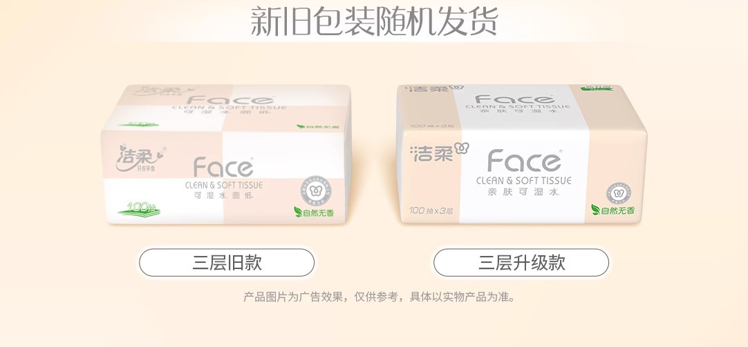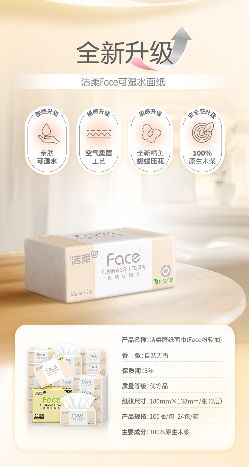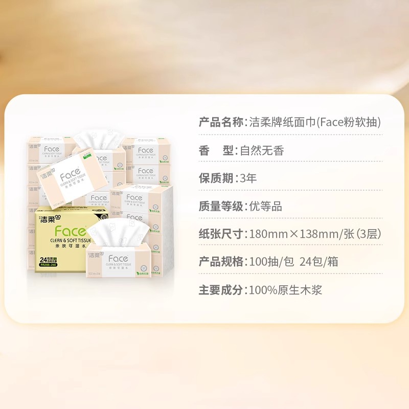 洁柔抽纸24包100抽3层纸巾抽纸 餐巾纸整箱 卫生纸纸巾批发