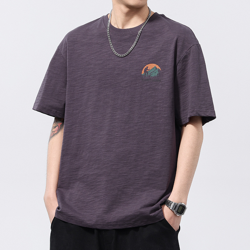 透气竹节棉t恤短袖男夏季新款宽松大码潮牌山系印花美式男体恤衫