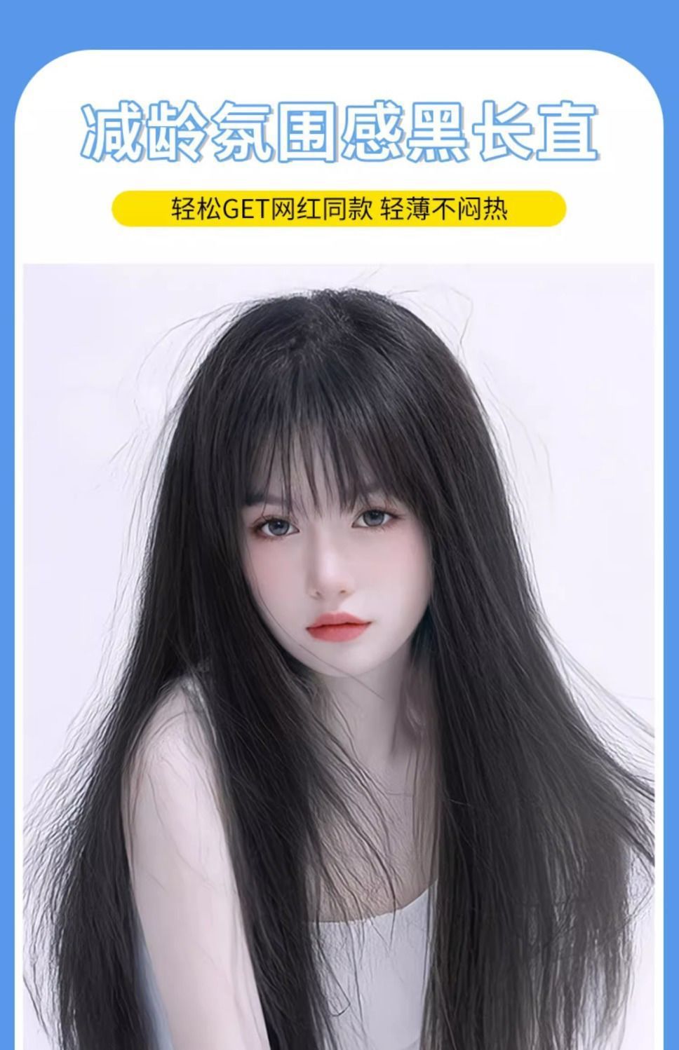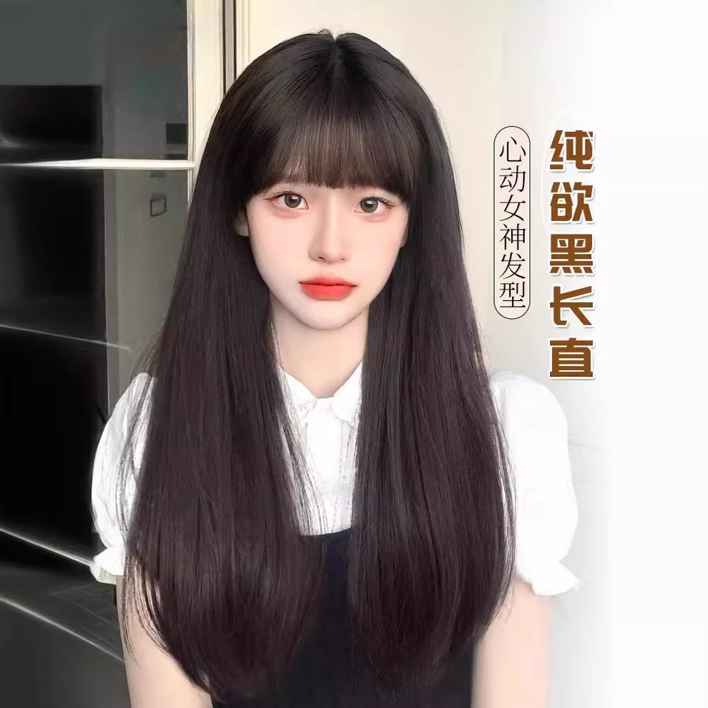 假发女长直发全头套式自然轻薄减龄仿真发丝黑长直假发套黑直