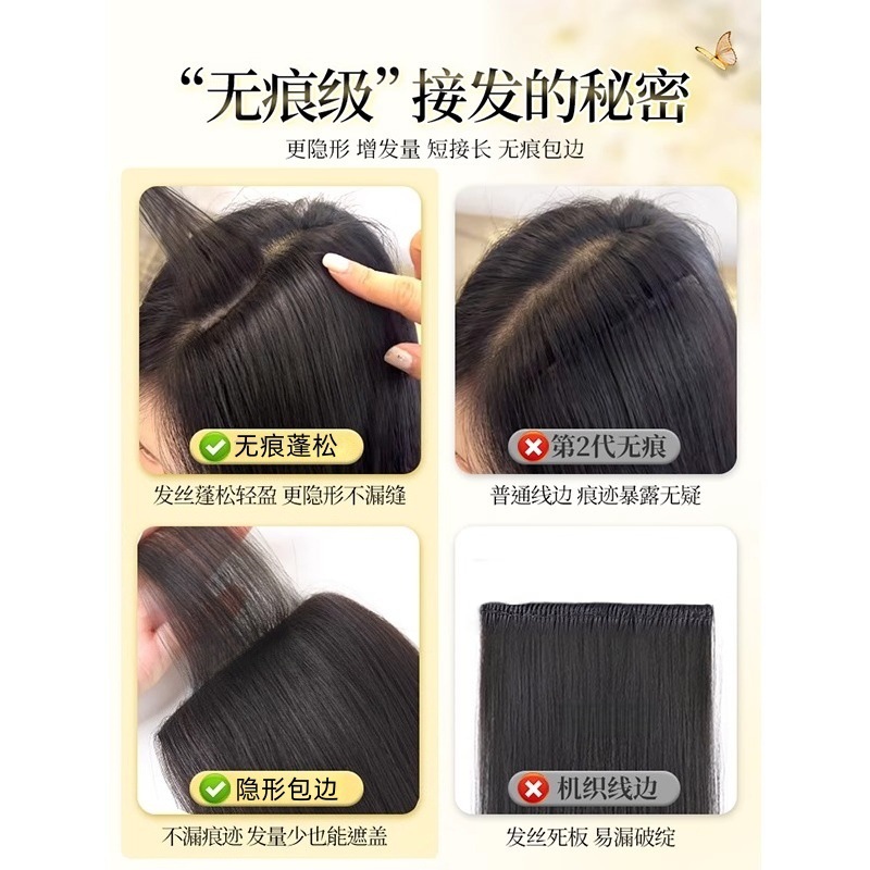 假发女三片式假发片包边隐形无痕增发量长直发短发接长蓬松接发片