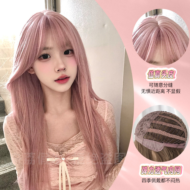 假发粉色长直发夏季甜美可爱女团时尚高层次氛围感全头套