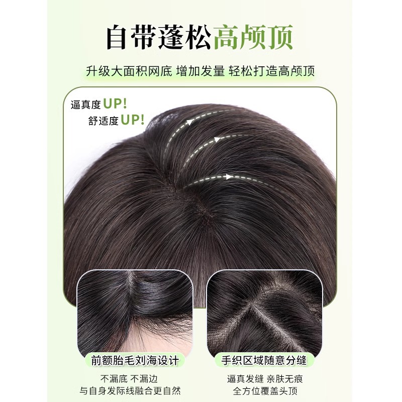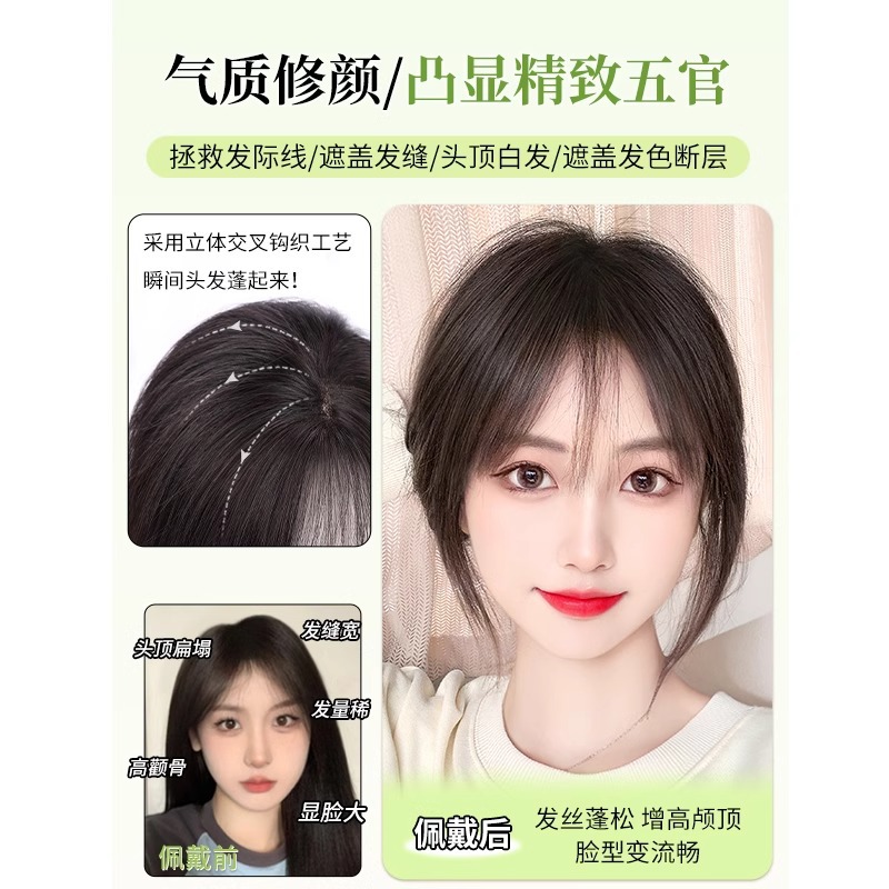 刘海假发女片头顶补发增发量蓬松真发全真人发遮白发假发片假刘海