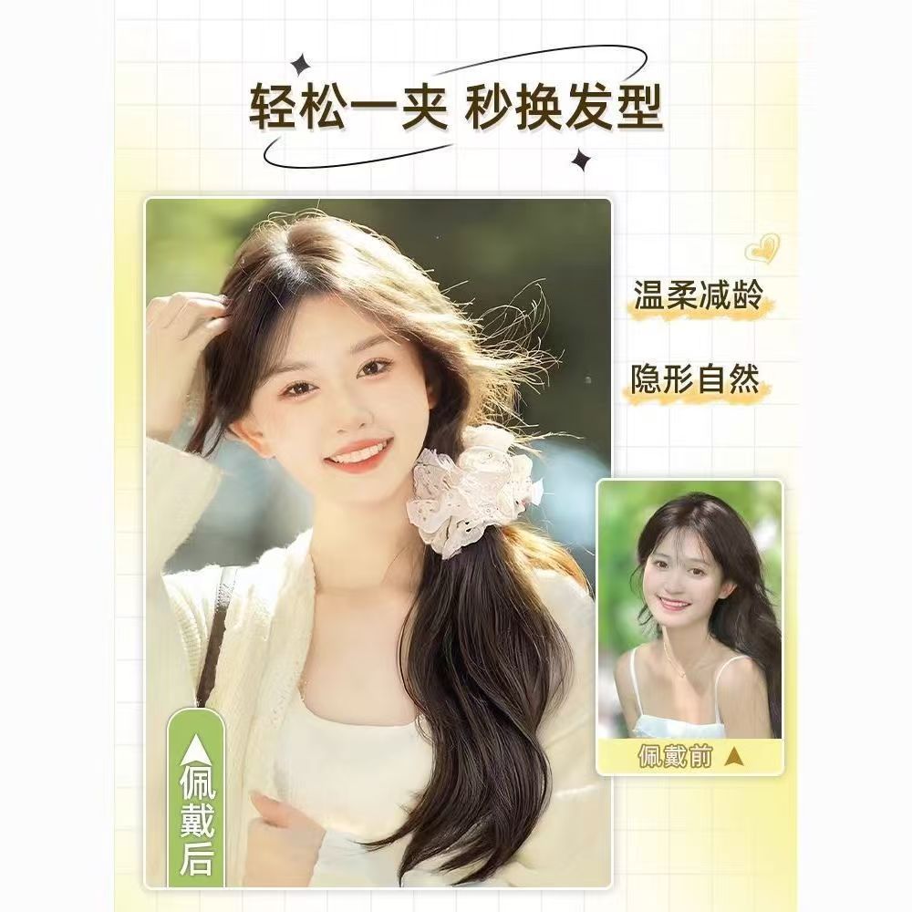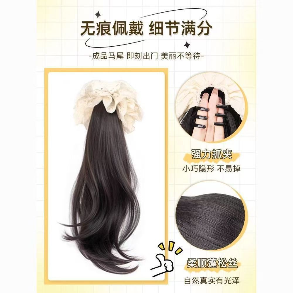 假发花边马尾抓夹款女仿真发蕾丝发圈轻盈无痕氛围感侧马尾辫