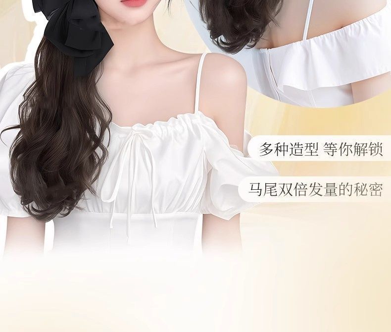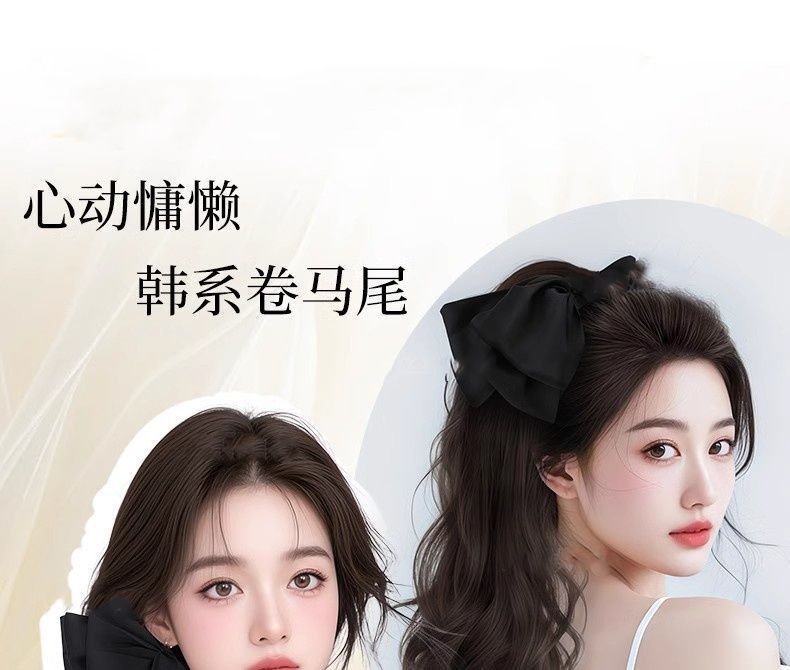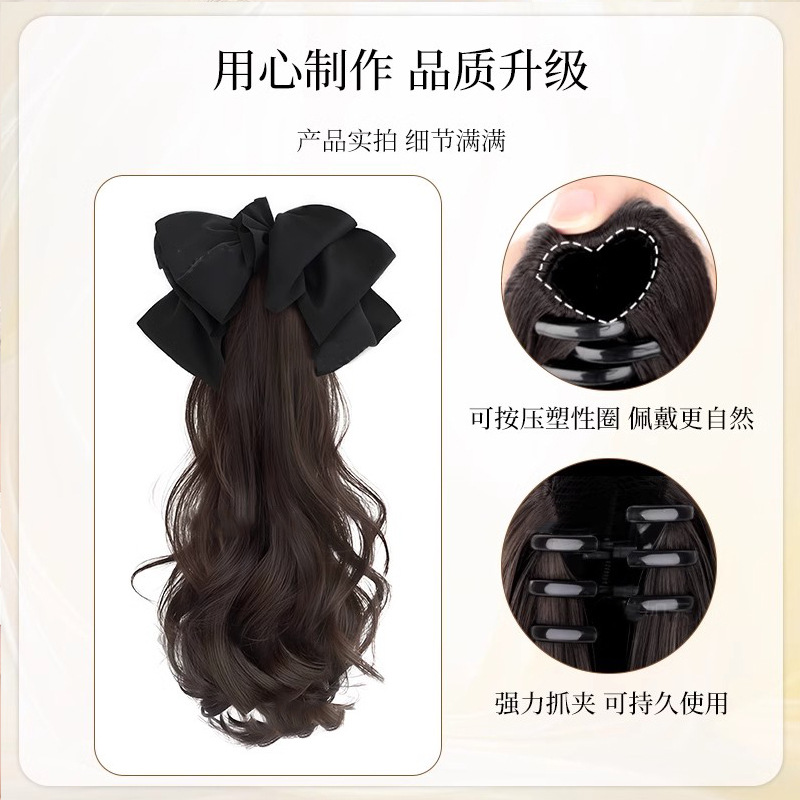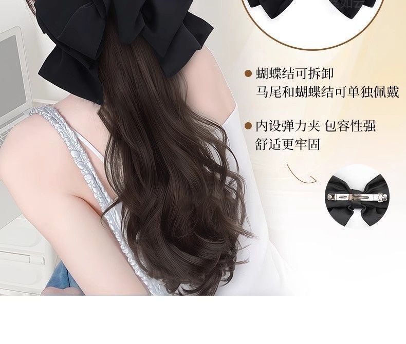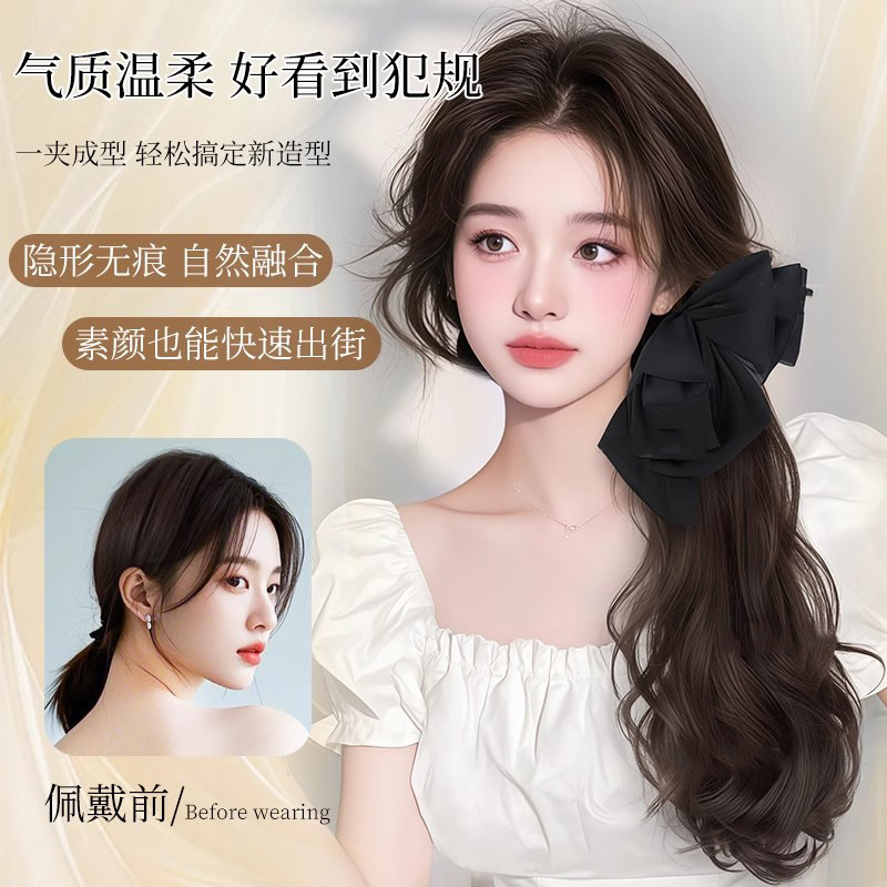 假发女长卷发抓夹高马尾仿真发甜美蝴蝶结低扎辫子假马尾